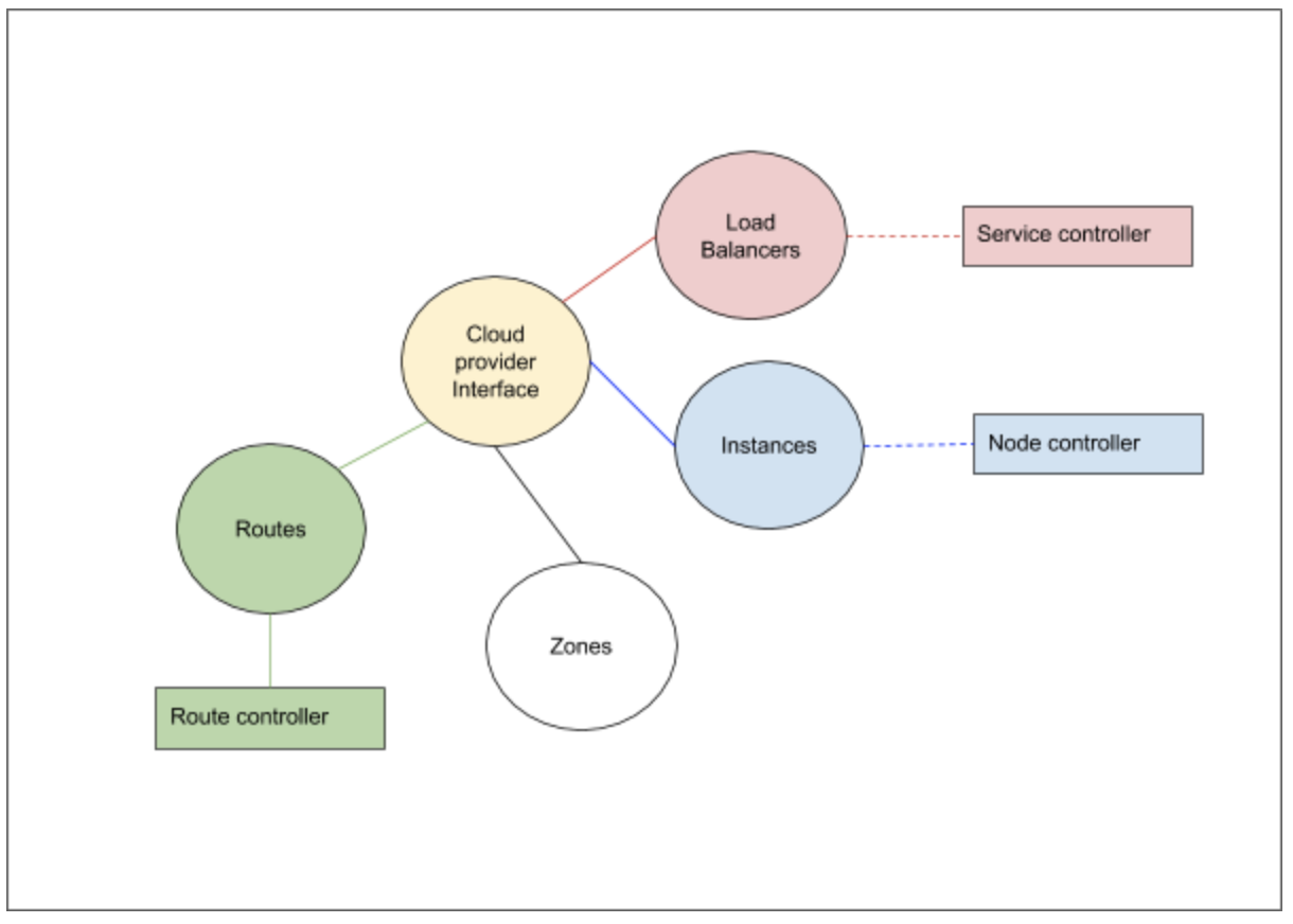 The cloud provider implementation of K8s can be largely divided into the following component interfaces which we need to implement: