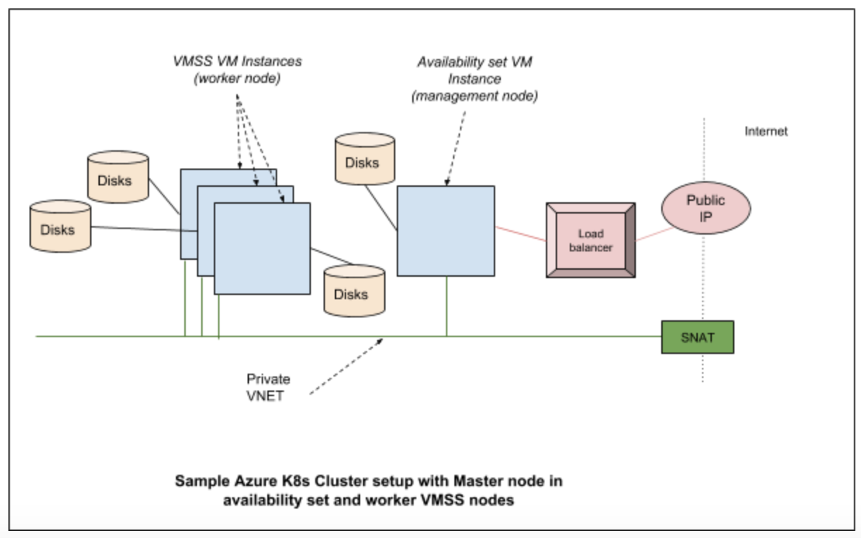 2. VMSS on worker nodes and Availability set on master nodes combination.